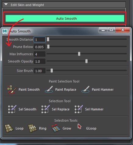 in the second tab, there is a section that contains a series of settings to change or edit your skinned mesh, the ability to soften the selected parts or you can use a brush to make those parts softer. . By pressing the (Auto Smooth) button, a new form will open and the settings will be available to you.